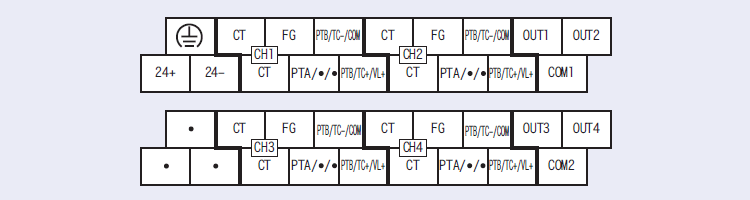 1) 具備4通道的溫度入力及電晶體出力,可處理"二位置控制、標準PID控制、溫控動作(具自動調諧機能)、加熱冷却PID控制、串級控制"。