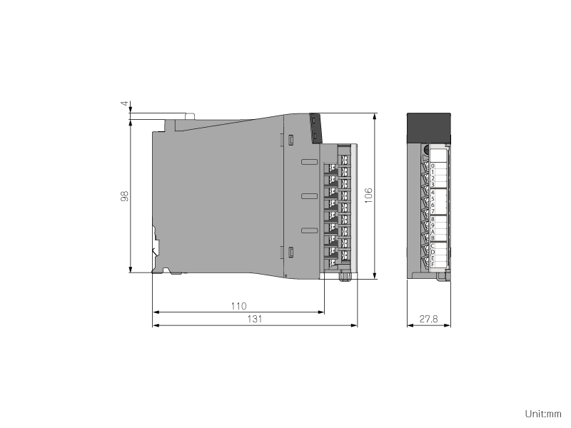 DC輸入,16點 DC24V 7mA, 應答時間:0.1/0.2/0.4/0.6/1/5/10/20/70ms, 16點/COM, +COM/-COM共用型,彈簧夾接線端子台 |
